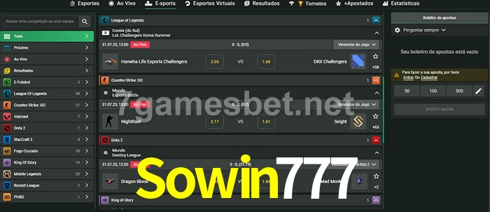 O Sowin777 oferece uma grande seleção de opções de apostas em e-sports com probabilidades competitivas